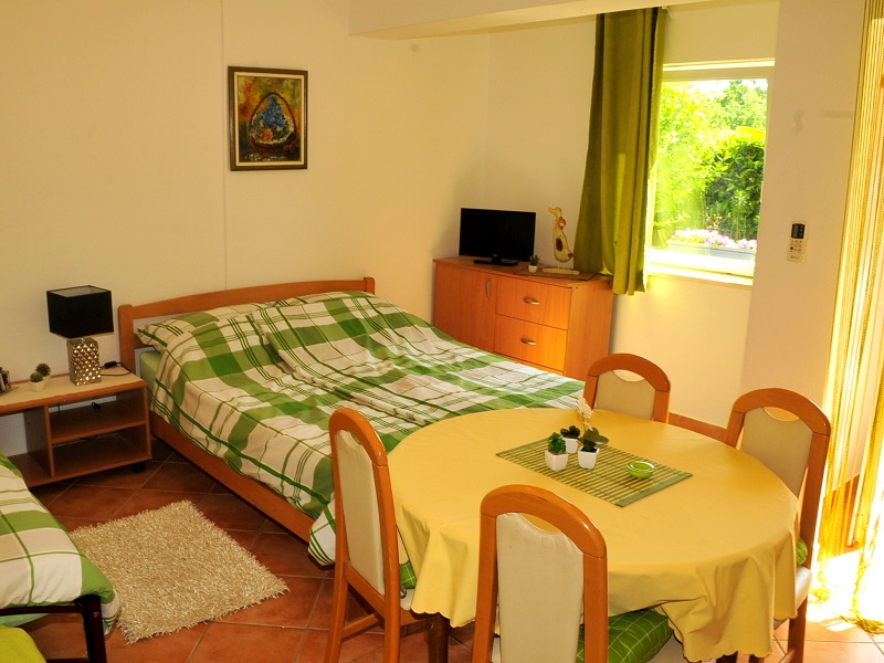 This studio apartment is located on the ground floor (therefore suitable for people with disabilities) of a family house situated in a quiet location with a nice terrace. The apartment is about 1 km from the center of Matulji, 300 meters from the well known restaurant "Ribica" which has a wide choice of quality fish dishes, and pizzeria "Kantun" is also nearby. The apartment has its own parking space. Pets are welcome.