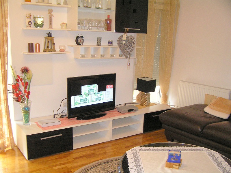 The apartment is located on the second floor of an apartment building situated in a quiet location, above the city of Lovran. This apartment can accommodate four quest in two double rooms and there is also a sofa bed in the living room. It has a fully equipped kitchen, living room, with SAT-TV, air conditioner, toilet with shower and a wash machine, a private garden and a private parking. The apartment have a balcony with a view of the sea. The distance to the center of Lovran is approx. 2.5 km, and the wonderful beach of Moscenicka draga is just 10 min. driving distance.